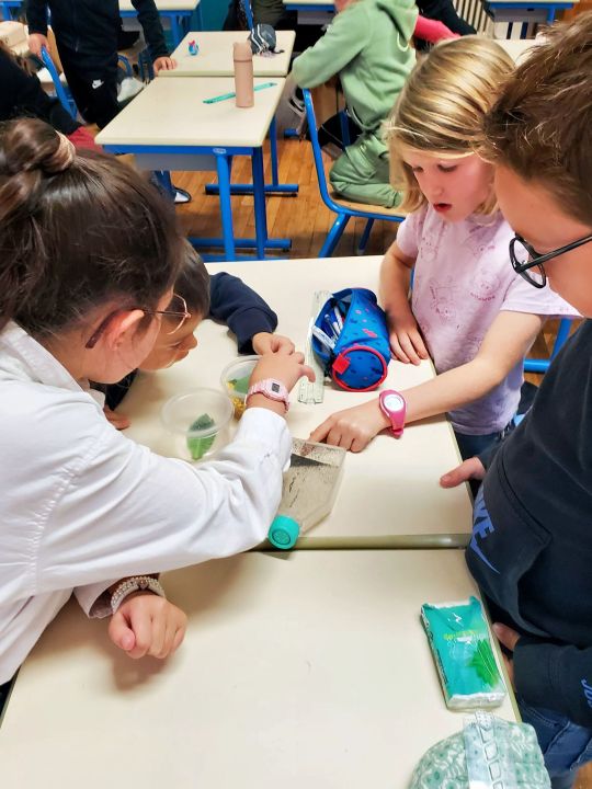 Ce lundi et mardi, les élèves de CM2 et de CM1 ont joué le rôle de professeur avec les classes de la Petite Section au CE2 en leur proposant de réaliser des expériences scientifiques travaillées au préalable en classe. Ils ont su fournir les explications scientifiques aux phénomènes découverts, accompagner les élèves dans les protocoles expérimentaux et gérer les différents groupes. Pas facile mais super moment pour tous !