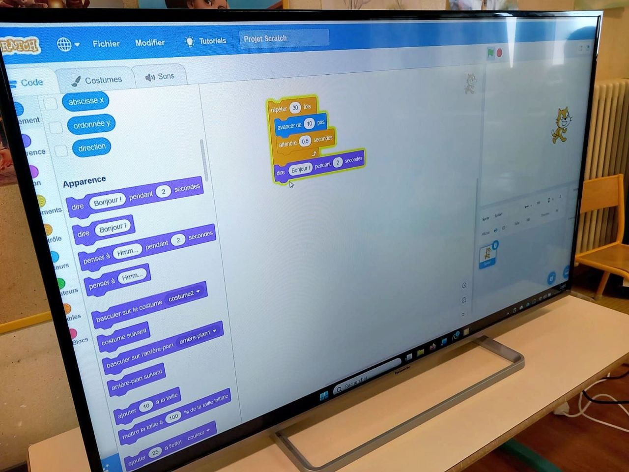 Ensuite, nous avons découvert la programmation avec le logiciel Scratch. Il s'agit de déplacer un personnage sur l'écran de l'ordinateur.